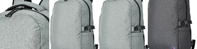 100% polyester; 18" x 12" x 6"; large main compartment; size zippered padded laptop compartment; embroidered c logo; silicone wrapped puller; external water bottle pocket; carry handle; contoured straps; padded back;