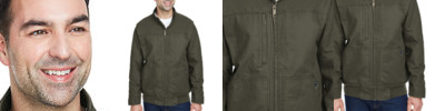 8.5 oz., 59% cotton/39% polyester/2% spandex DRI FLEX™ canvas with a water-resistant DWR finish; Brushed tricot inside upper body panel; Quilted nylon inside lower body panel with 3 oz. polyfill; Right-chest zippered pocket and secure hand pockets; Heavy-duty 2-way YKK metal zipper; Three-piece hood with scuba collar and inside, adjustable-toggle drawcord; Flex Action™ back, underarm gussets, and articulated elbows; Drop tail hem, storm cuffs; Reinforced stitching on high-stress seams; Relaxed fit;