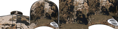 100% brushed cotton twill; Camo - 60% cotton, 40% polyester peached twill; Orange - 100% polyester; Structured front; Pre-curved visor; Hook and Loop backstrap; Detailed embroidered wildlife scene on right side; Dri Duck embossed leather patch left of back vent;