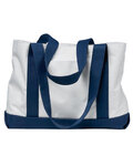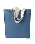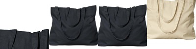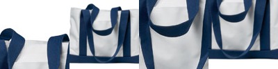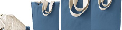 100% cotton canvas; Self-fabric handles; 10.25"W x 13.5"H x 5"D;