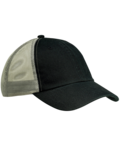 Fabric 100% cotton twill front panels and bill (Solids), 100% poly mesh back panels; 65/35 polyester/cotton twill front panels and bill (Heather Grey)