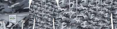 - Solid 1x1 rib around hood, cuffs and waistband