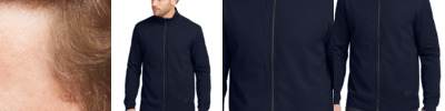 - Contrasting color 1x1 rib-knit collar and cuffs