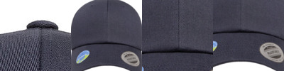 100% cotton; 6-panel, unstructured, low-profile; Silver buckle closure; Permacurv® visor, matching undervisor, 6-row stitching on visor; Trendy Dad cap; Created with less water, less energy and no chemicals;