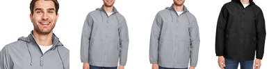 Body: 4 oz/yd2/132 gsm, 100% nylon woven; Lining: 100% polyester mesh; Dyed-to-match vislon style zipper with autolock slider and self fabric pull; Dyed-to-match shockcord at rollaway hood; Encased elastic at sleeve hems; Dyed-to-match eyelet details at underam; Lower front zippered pockets; Convertible stormflap detail with plastic dyed-to-match snaps, can be worn up or down;