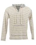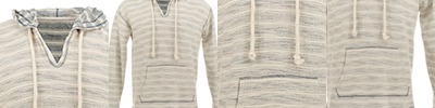 9 oz., 55% cotton 45% polyester french terry; Yarn-dyed stripe pattern on backside of fabric; Thick off-white rope-like drawcords; Side split welts at waist;