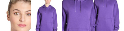 7.3 oz., 60% cotton, 40% polyester mélange fleece; Contrast self-fabric sleeves and hood; 1x1 rib cuffs and waist; Full front zippered placket;