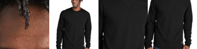 6.5 oz., 80% cotton 20% polyester sueded fleece; Dolman half sleeve construction; Rounded raw-edge hem; 1x1 rib collar and cuffs;