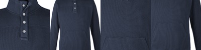 8.25 oz., 55/44 cotton/polyester knit ottoman fleece; Horizontal stripe texture throughout fabric; Metal snap placket; Twill tape back of neck tape, set-on pouch pocket; Air-spun fleece yoke and collar; 2x2 rib cuffs and waistband; Double-needle stitched throughout; Tear away label;