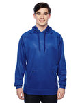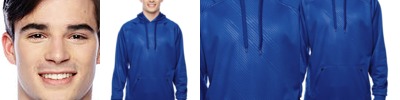 7.1 oz., 100% polyester tonal performance wicking fleece; 100% polyester performance wicking fleece solid contrast inserts and pocket welts ; Wicks moisture away from the body ; Contrast color lightweight mesh hood lining ; Heathered tipped drawcord in Adult sizes only ; Pad print label ; Raglan sleeves with self-fabric cuffs ;