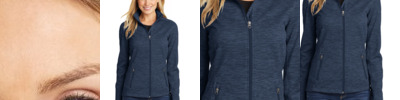 100% polyester brushed back fleece, 7.4 oz./yd2/250 gsm; Moisture wicking performance; chin guard; front reverse coil zipper with reflective asymmetric piping; chest pocket with reverse coil zipper and zipper garage; contrast coverstitch detailing; lower pockets with reverse coil zippers;