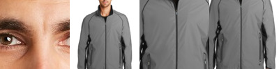 This fully waterproof, wind resistant and tech-savvy jacket delivers complete protection without the bulk. Made with a polyester woven shell bonded to polyester microfleece, this color blocked soft shell is great for cold days. Movement is a breeze with four-way stretch fabric. Plus, the interior MP3 pocket keeps the tunes coming in this sleek, urban jacket.