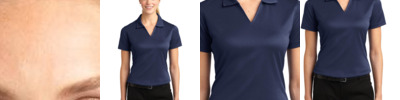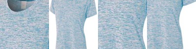 100% polyester heathered wicking knit ; Wicks moisture away from the body ; Ladies' fit ; Pad print label ; Self-fabric V-neck collar ; Set-in sleeves ; Double-needle hemmed bottom and sleeves.;