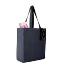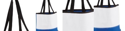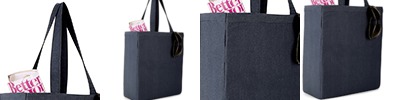 12 oz cotton canvas; 15" x 16"; 20" self-fabric handles; Non-branded label/tag;