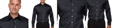 3.5 oz., 53% cotton, 43% polyester, 4% lycra; Fine yarn count shirting; True Non-iron performance straight from the dryer; stain release finish; Active Fit; Patented pucker-free taped seams; Fused collar, cuffs, and placket; Split back seam with bias cut back yoke; Straight collar with built-in collar stays; adjustable Comfort Collar for up to an inch of stretch at neck; left-chest pocket; pearlized buttons;