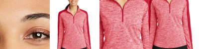 100% polyester interlock, 4 oz. per square yard; Moisture wicking, odor resistant, stain release; 44+ UPF for UV sun protection; Ultra tight knit resists snagging; Fade and snag resistant for durability; UPF 30+; Raglan sleeves for maximum mobility; 8 1/2" zipper; Lined collar and placket for support, strength and crisper look;