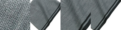 - seamed 1x1 rib collar with spandex; contrasting neck tape