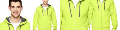 Heavyweight 100% polyester matte brushed tricot ; Heat sealed label ; Center front zipper; Contrast color inserts on collar and shoulder ; Set-in sleeves ; Front seam pockets ; Self-fabric cuffs ;