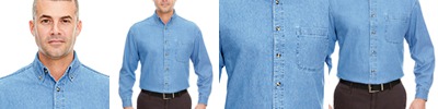 Washed chambray and off-white contrast stitching give this casual garment washed shirt an authentic, laid-back look.