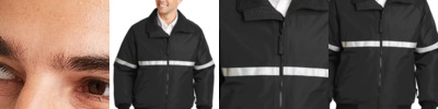 100% polyester, all season soft shell ; Wind resistant ; Water resistant, DWR finish ; Breathable ; 4-way stretch ; Media port ; Adjustable three-piece hood designed to contour for a comfortable fit; Zippered chest and hand pockets; Adjustable cuff ; Adjustable hem; Auto lock zipper with easy grab puller; Media port;