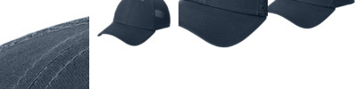 100% cotton twill, pigment dyed, garment washed; 2 1/4" crown, three panel visor; Heavy distressing; Self-fabric end-on-end hook and loop closure;