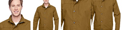 Shell: 8.26 oz./yd2/280 gsm, 80% polyester, 20% cotton coated canvas; Shell: Water-resistant finish; Lining: 65% polyester, 35% cotton jersey in front and back body; 100% polyester taffeta in sleeves; Lining: 65% polyester, 35% cotton jersey in front and back body,; Fold down collar with inside storm placket; Double welt pen pocket on wearers left arm; Inner pocket; Adjustable cuffs with snaps; Lower front welt pockets with hidden snap closures; InconspicuZip feature;