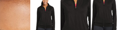 3.5 oz. / 130 gsm; 100% polyester interlocking with moisture-wicking and UV protection performance; Center front coil zipper with semi-autolock slider and rubber pull; Athletic fit; Cationic dyes to ensure superior brightness and excellent color fastness; Transitioning from heat-seal label to tear away label. Inventory may be mixed;