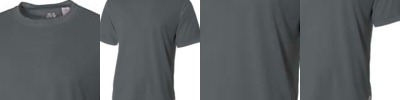 4 oz., 100% polyester; Moisture-wicking; Pill-resistant; Relaxed fit; Tear-away label;