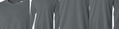 4 oz., 100% polyester; Moisture-wicking; Pill-resistant; Tear-away label;
