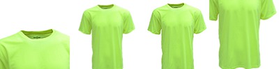 100% polyester heathered wicking knit ; Wicks moisture away from the body ; Pad print label ; Self-fabric crewneck collar; Set-in sleeves ; Double-needle hemmed bottom and sleeve.;