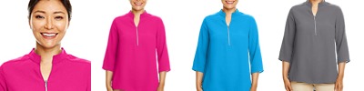 - Features moisture wicking, odor resistance, stain release and 8" zipper