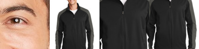 With contrast color detailing throughout, this double-knit jacket is right on trend with moisture-wicking performance and a left sleeve pocket for your phone or MP3 player.