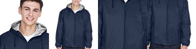 2.9 oz. shell 100% nylon shell; 8.5 oz. lining; Fleece lining; Water- and wind-resistant; Self-adhesive collar stays; Underarm gussets; Embroidery access zipper on inside left-chest; Nylon zipper;