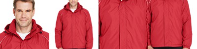 storm flap with snap closure at bottom; brushed tricot-lined collar and chin guard; centre front autolock zipper with reflective toggle; roll-away hood; elasticized cuffs; lower brushed tricot-lined concealed zippered pockets ; thermal retention shockcord at hood and drop back hem; audio port access through inside left pocket; reflective piping at shoulder yoke and centre back yoke;