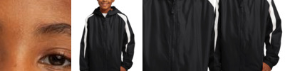 3.5 oz., 100% polyester fully seam-sealed, two-layer waterproof and breathable s; 3.2 oz, Dyed-to-match 100% polyester micro-mesh lining throughout; 6,000 mm waterproof rating and 6,000 g breathability; rollaway three-piece hood with 1¼" rain bill; waterproof reverse coil zipper at center front and pockets with semi-autolock rubber pull tabs; black contrast side panels; reflective tape at right-chest and front pockets; hook and loop hem closures at cuffs; drop-tail hem and elastic shockcord protects from the elements;